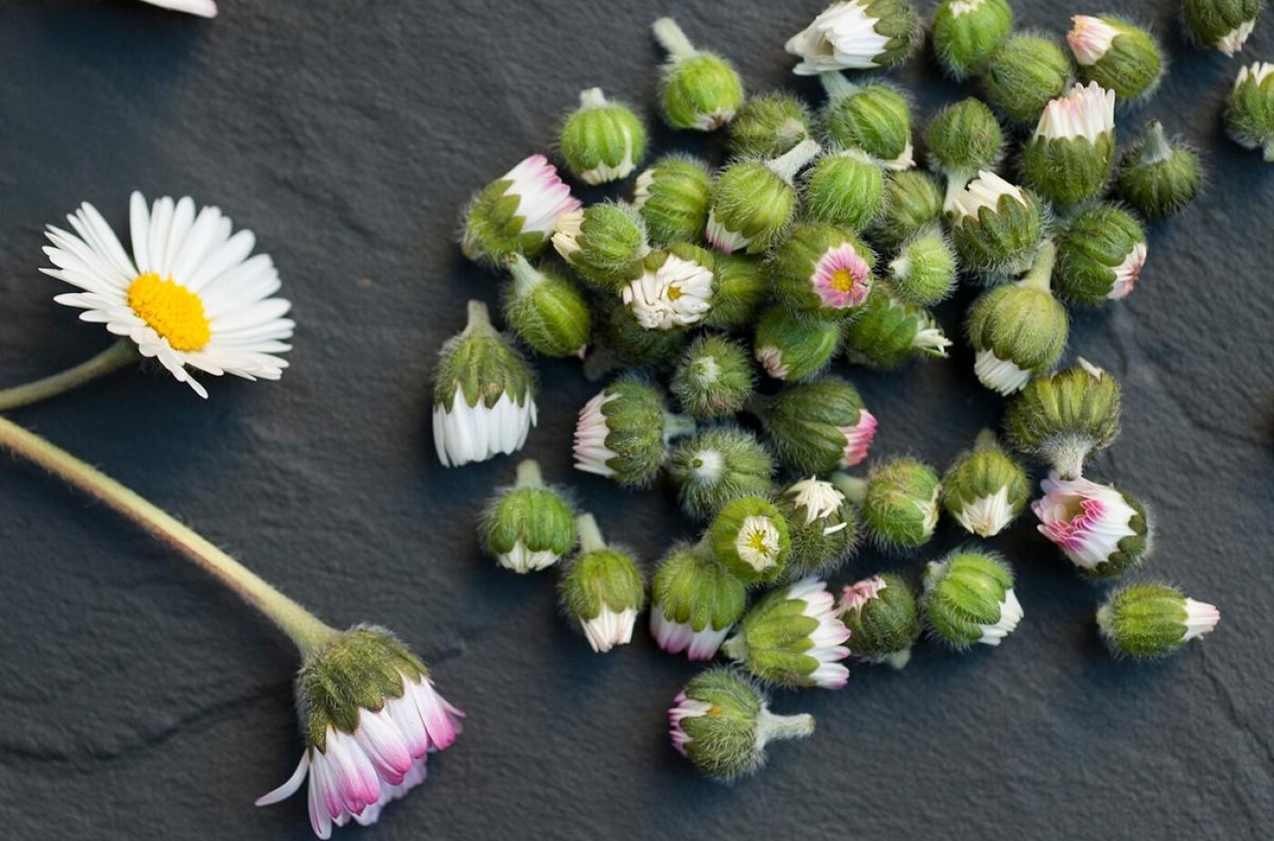 Was für eine Idee – und was für ein leckerer Geschmack! Wer Kapern mag, wird diese Version lieben! Sammeln Sie die noch geschlossenen Knospen der Gänseblümchen und legen Sie sie über Nacht in Salzwasser ein. Am nächsten Tag kochen Sie Essig nach Wahl (Obst-, Wein- oder Kräuteressig) auf und brodeln die Knospen für einige Minuten mit. Sie können auch Lorbeerblätter oder etwas Knoblauch mitkochen oder den Essig mit Weißwein verdünnen. Füllen Sie alles in ein sauberes Schraubglas, verschließen Sie es gut und lassen Sie es über Kopf abkühlen. Nach zwei bis drei Wochen können Sie Ihre „Kapern“ genießen.