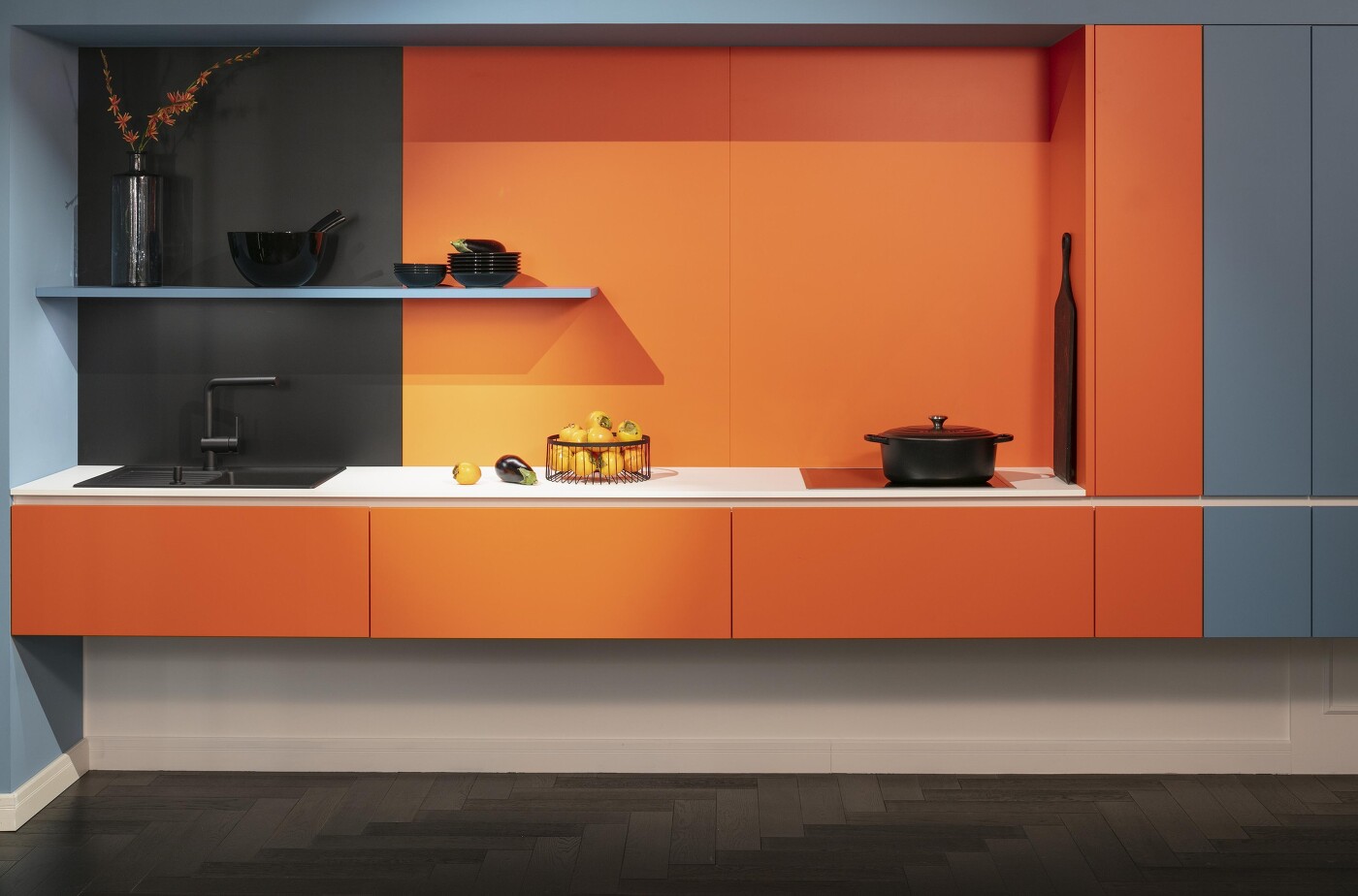 Die elegante Anmutung ist auch mit Knallfarben äußerst geschmackvoll. Dafür sorgt auch die grifflose Gestaltung, die zugleich äußerst strapazierfähig und kantenrobust ist. Falls Sie diese Art der Unterschrank-Aufhängung begeistert, sprechen Sie uns an. Wir zeigen Ihnen gerne, wie sich auch bei Ihnen eine schwebende Küchenzeile verwirklichen lässt!