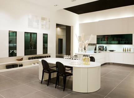 Die Entscheidung hört bei den Fronten nicht auf. Einen wesentlichen Bestandteil der Küchenplanung machen die Einbaugeräte aus. Neben der Überlegung, welche Funktionen persönlich Vorrang haben (Dampfgaren, Grillen, Weinkühlen etc.), müssen auch Farb- und Design-Komposition stimmen und gefallen. Einbaugeräte können dabei tolle Akzente setzen, wenn man sie bewusst auffallen lässt. Denn auch bei den Gerätefronten sind ganz neue Materialien ins Spiel gekommen – von der klassischen Edelstahloberfläche über großzügige Flächen aus schwarzem Glas bis hin zu grifflosen Spiegelglasfronten