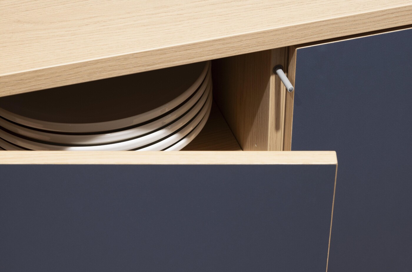 Bekannt als nachhaltiger, raumklimafreundlicher und robuster Fußbodenbelag kommt Linoleum jetzt auch als natürliche, emissionsarme Küchenfront zum Einsatz, u.a. in Farbtönen wie Rauchblau, Naturgrau, Walnussbraun oder Olivgrün. Dazu wird eine Holzwerkstoffplatte mit Linoleum beschichtet, je nach Küchenhersteller auch vollständig ummantelt.