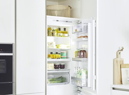 Darüber hinaus bietet diese stilvolle Tiny Kitchen auch noch jede Menge Stauraum allein dadurch, dass die volle Raumhöhe ausgenutzt wird. Variable Schrankhöhen machen's möglich! Dank perfekter Küchenmontage bilden auch alle Fugen eine schöne gerade Linie. – Das machen wir möglich :-)